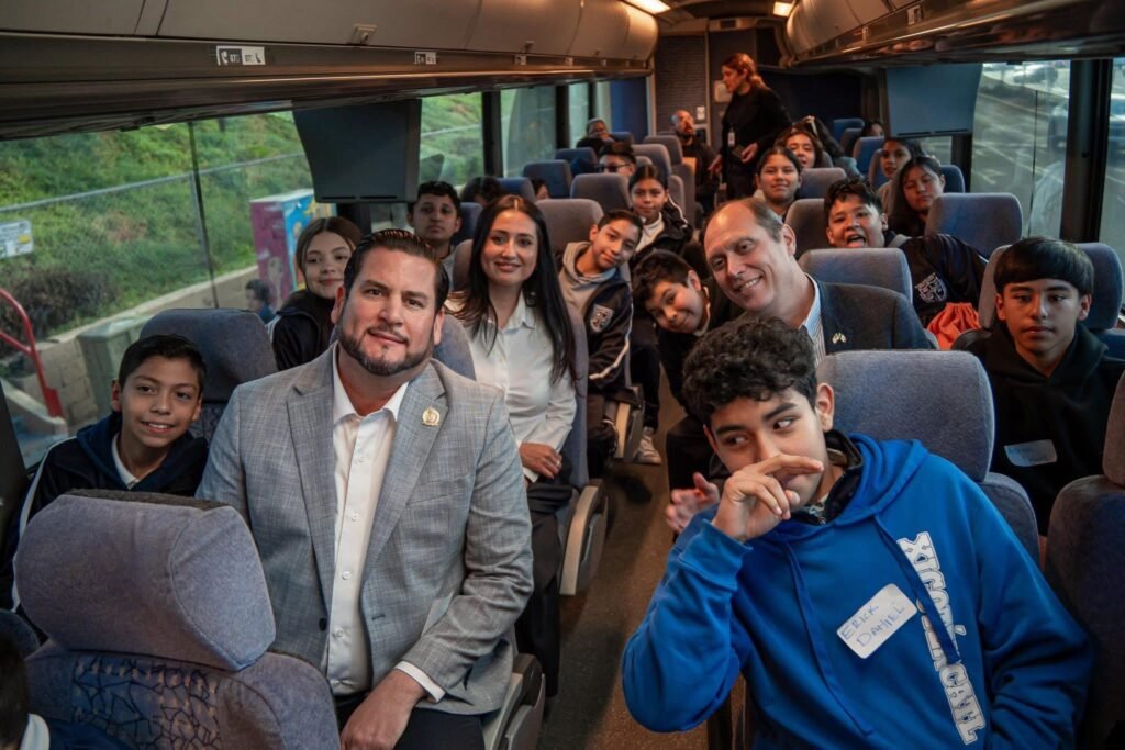 El presidente municipal Ismael Burgueño Ruiz acompañó a alumnos de la Escuela Secundaria Municipal No. 2 ‘Xicoténcatl Leyva Alemán’ en su traslado al Museo de Arte de San Diego, como parte del programa ‘Arte Traspasando Fronteras’, orientado a ampliar los horizontes académicos y culturales de los estudiantes tijuanenses.